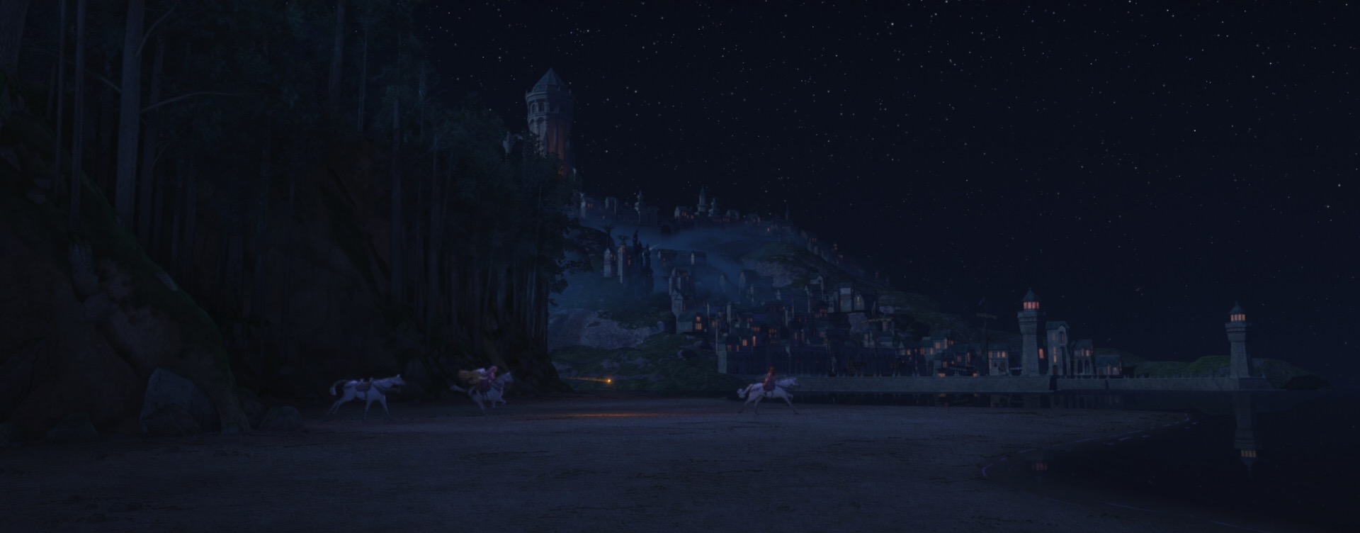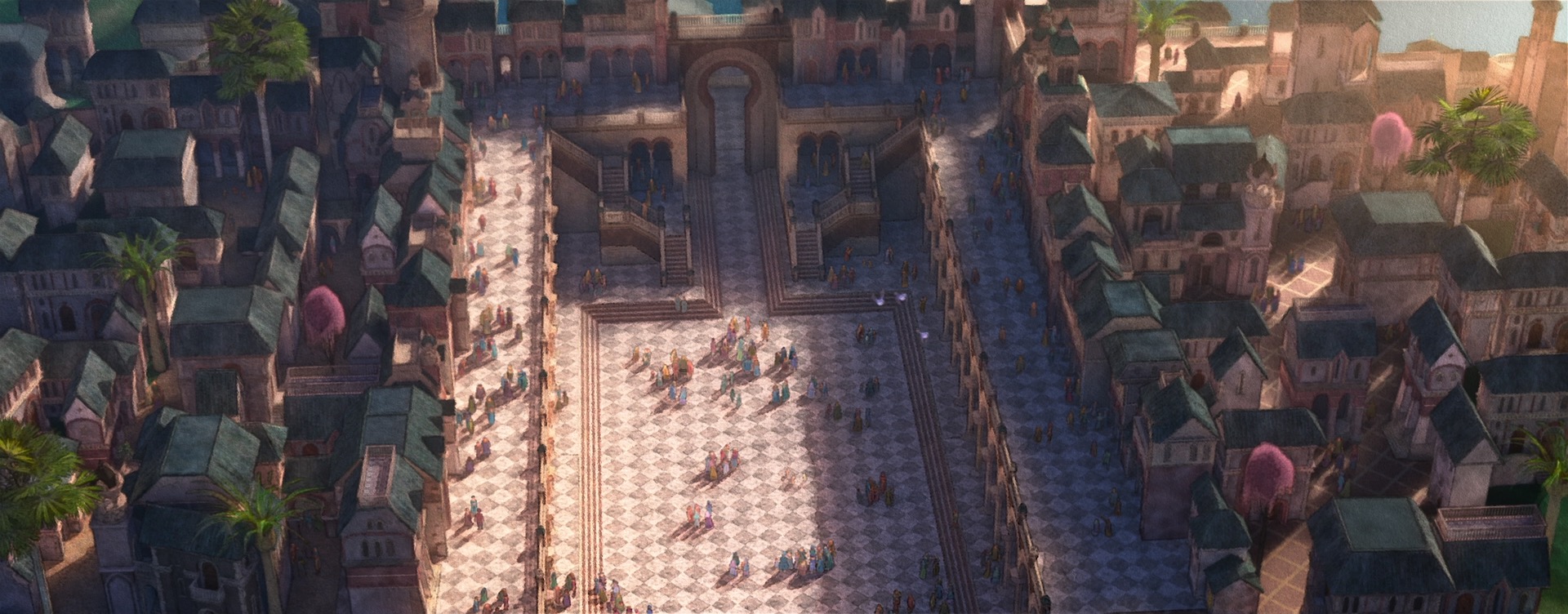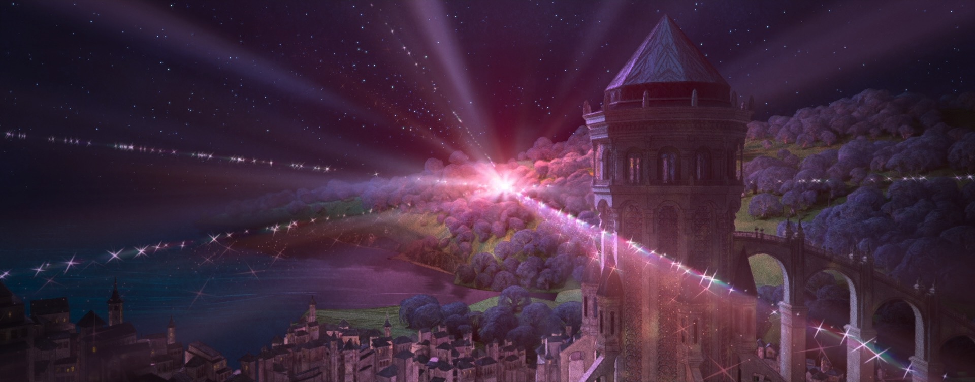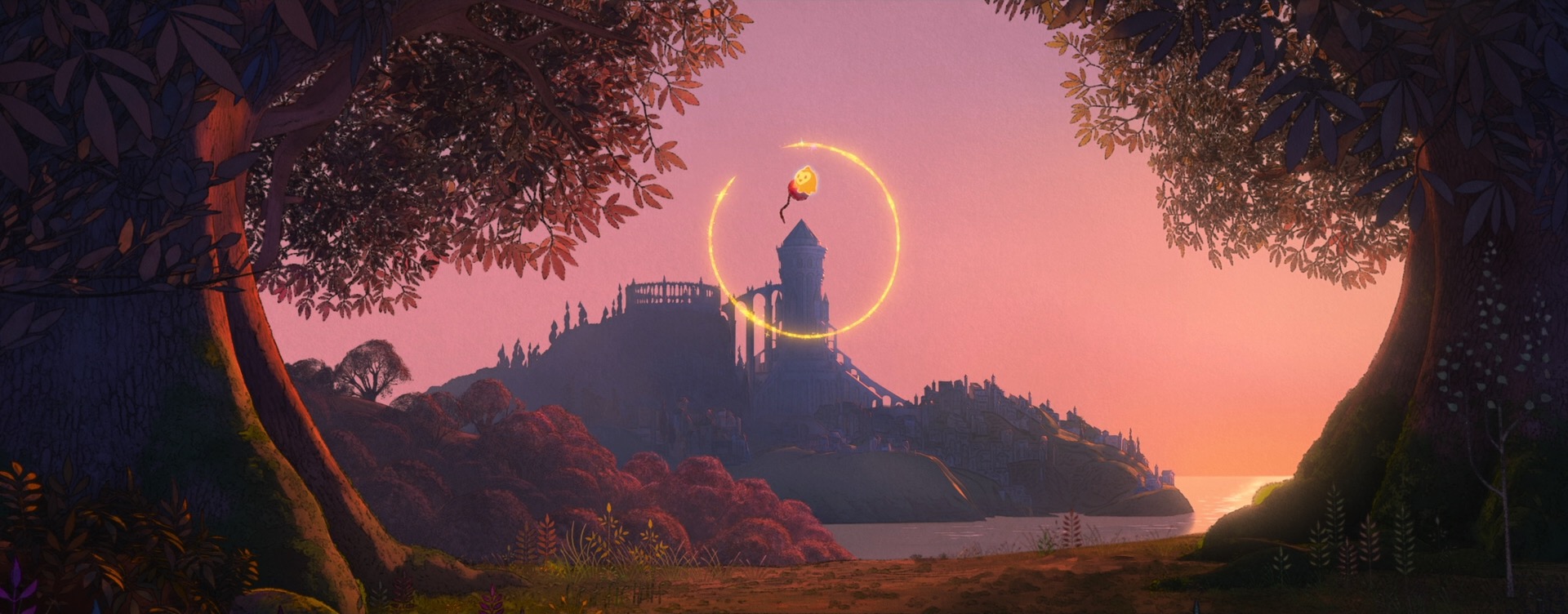 The decision to give Wish a unique style came from pretty much the very beginning of the project; the studio wanted to do something special for the 100th anniversary film to tie together our modern way of making animated films with the studio’s rich hand-drawn heritage. The look of Wish is especially influenced by early 20th century Disney traditional watercolor animation, with Snow White and the Seven Dwarfs (1937) and Sleeping Beauty (1959) being the largest guideposts. This influence extends all the way to the very shape of the film, so to speak- Wish is the first CG film that Disney Animation has made in the ultrawide 2.55:1 Cinemascope-style aspect ratio, matching the aspect ratio that was used on Sleeping Beauty and Lady and the Tramp (1955). This aspect ratio choice meant that stylization on Wish even impacted layout, since they had to think about how to frame for such an ultrawide image!