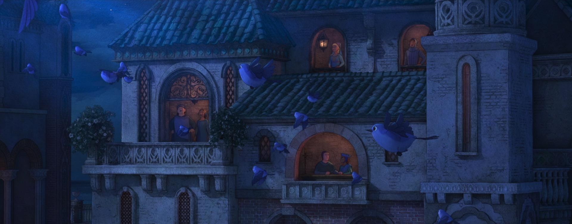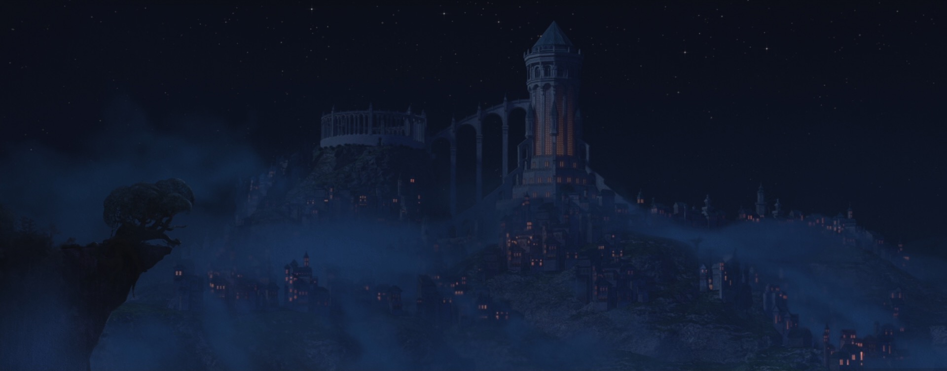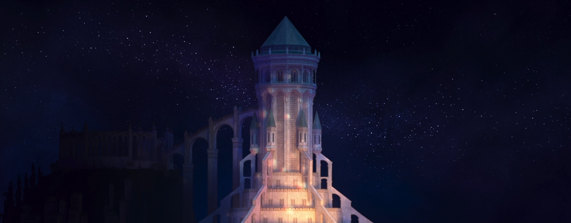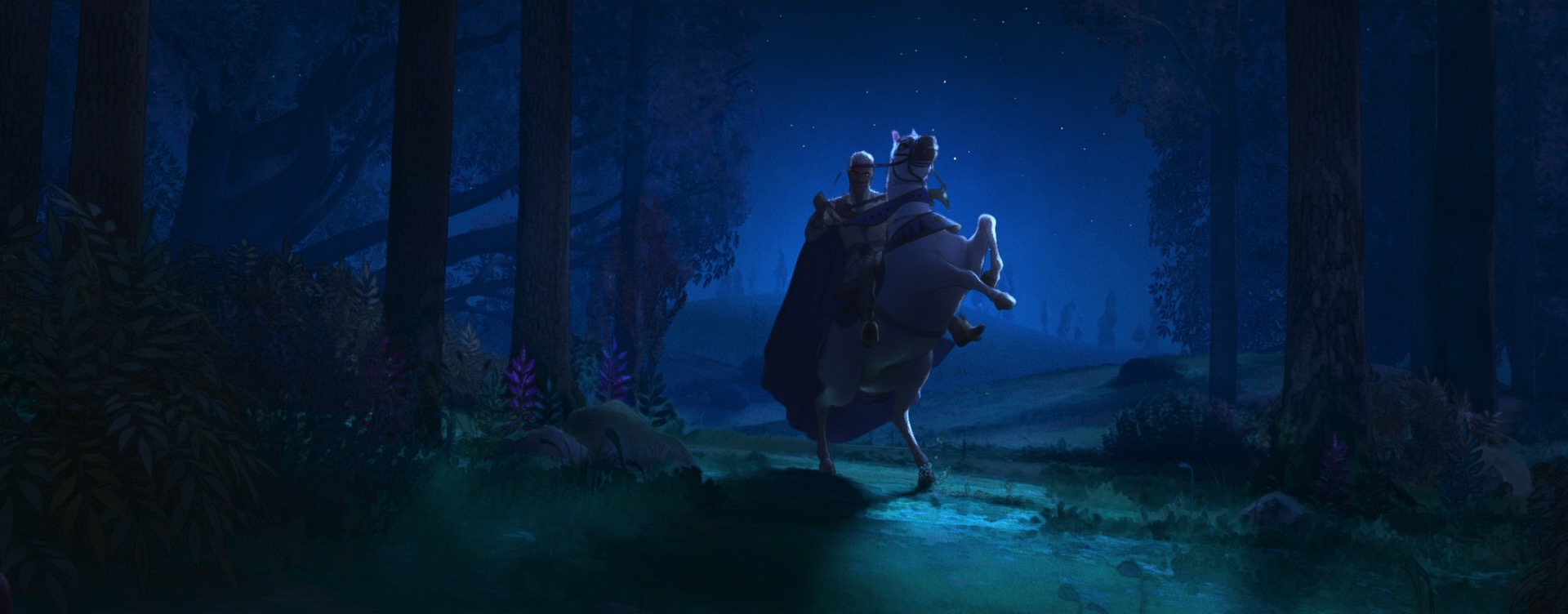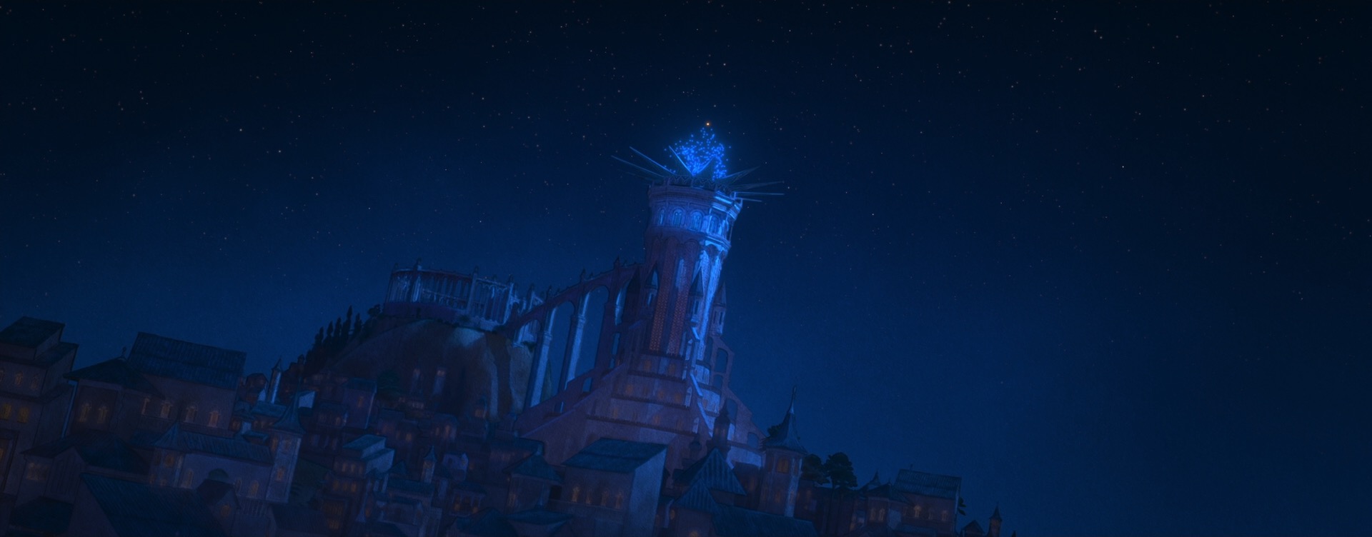 The decision to give Wish a unique style came from pretty much the very beginning of the project; the studio wanted to do something special for the 100th anniversary film to tie together our modern way of making animated films with the studio’s rich hand-drawn heritage. The look of Wish is especially influenced by early 20th century Disney traditional watercolor animation, with Snow White and the Seven Dwarfs (1937) and Sleeping Beauty (1959) being the largest guideposts. This influence extends all the way to the very shape of the film, so to speak- Wish is the first CG film that Disney Animation has made in the ultrawide 2.55:1 Cinemascope-style aspect ratio, matching the aspect ratio that was used on Sleeping Beauty and Lady and the Tramp (1955). This aspect ratio choice meant that stylization on Wish even impacted layout, since they had to think about how to frame for such an ultrawide image!