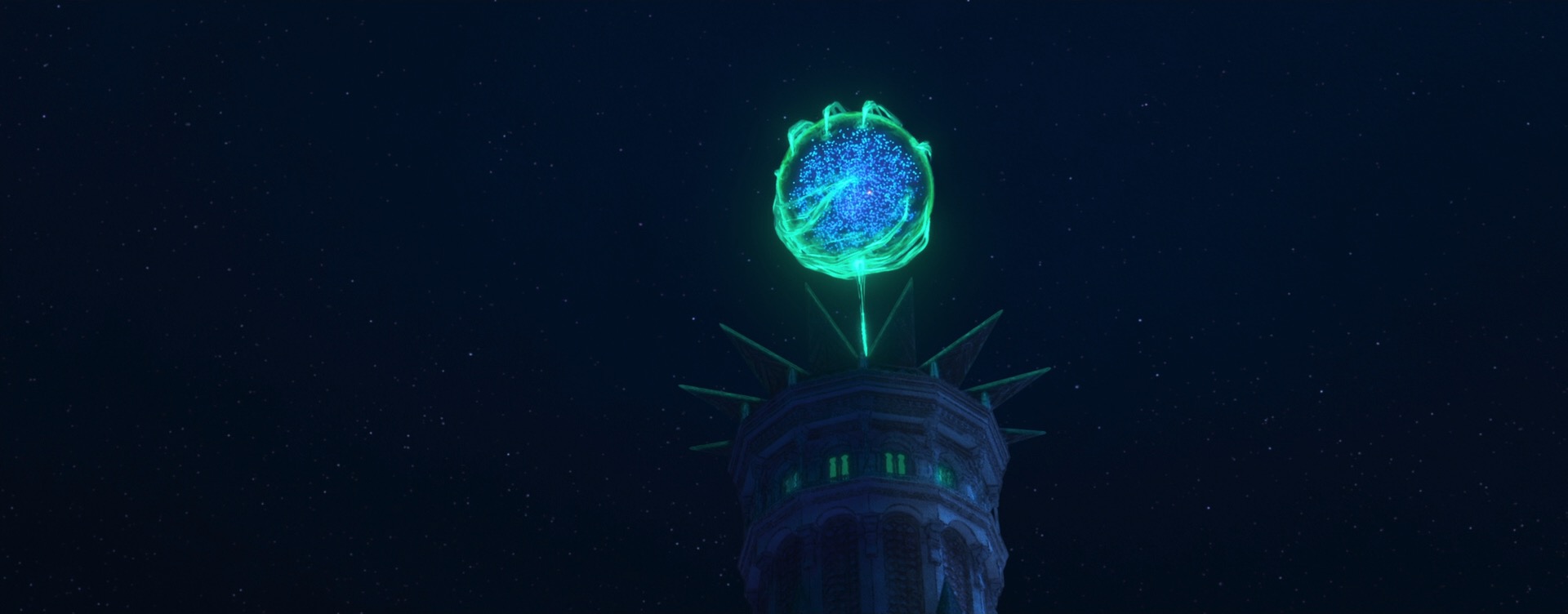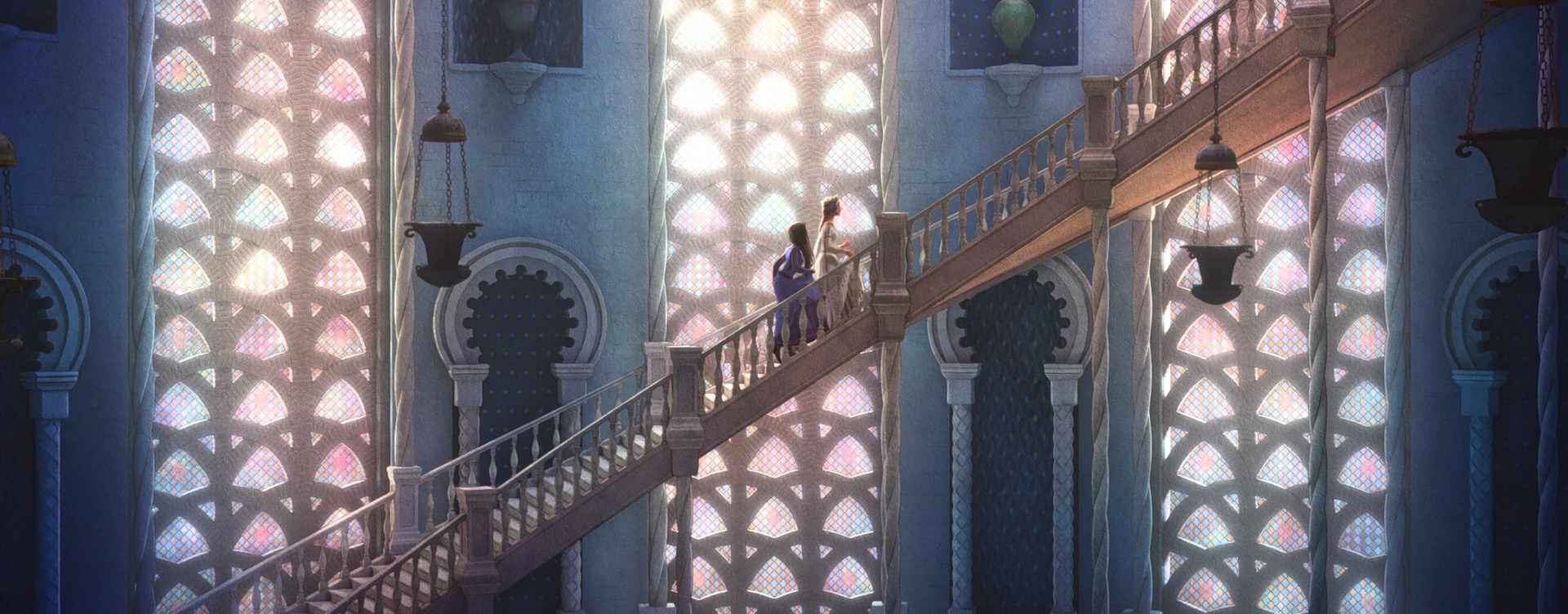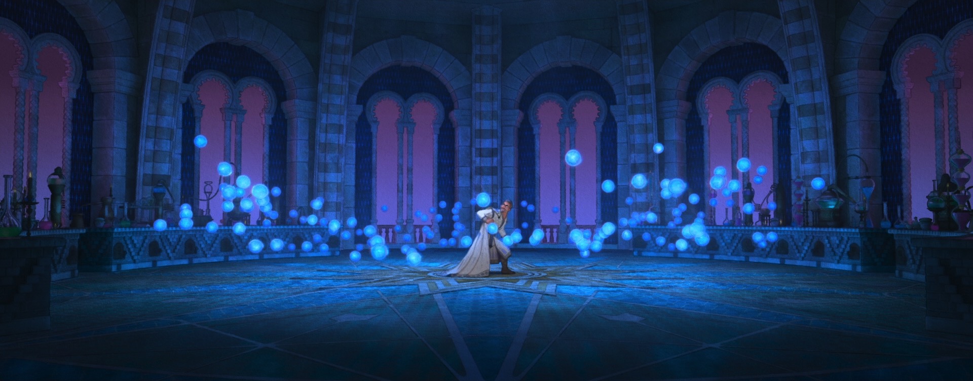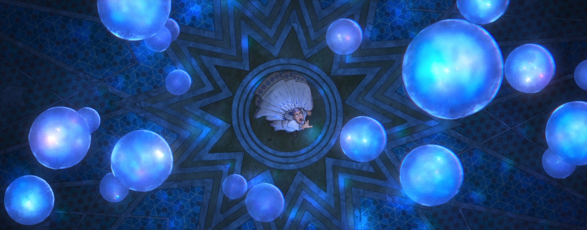 There were actually also some more traditional physically based rendering problems to solve on Wish too, which one might not necessarily expect for such a stylized film. For some of Magnifico’s magic, the art-direction called for a sort of prismatic look where white light would get split into different colors. We decided to try to achieve this effect through physically based shading, since the starting point for Wish’s entire stylization pipeline was renders with physical lighting in order to provide consistency. To achieve this effect through physically based shading, I extended the Disney BSDF with spectral dispersion support (retrofitting a spectral effect into a non-spectral renderer was a fun challenge worth discussing on its own someday). Once our lookdev artists had access to dispersion within the Disney BSDF, it was fun seeing all of the other places where they started sprinkling the effect in, such as in various glass objects.